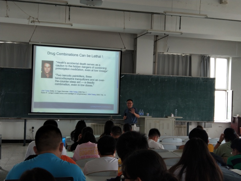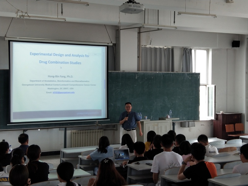 报告会中,学院副院长王纯杰先向同学们介绍了方宏彬副教授的个人简历,然后,方宏彬老师简单介绍本人的工作经验,简单介绍了关于肺癌和乳腺癌的一些案例和病例。主题是如何找到新药针对病情。讲述如何去治疗癌症,两种新药针对一种疾病的效果是加和作用还是促进作用,进而了解新药的效果,运用了一些关于数学统计的公式推倒去验证结论;讲述了应该怎么样去做实验去验证结论,清楚的讲述了统计的应用以及大部分人对统计理解的偏差。老师和学生提出提出了一些问题,方洪斌老师都作出了一一解答并且解答的非常详细,使得学生和老师得到了知识的提升,加大了对此方向更深刻的了解。