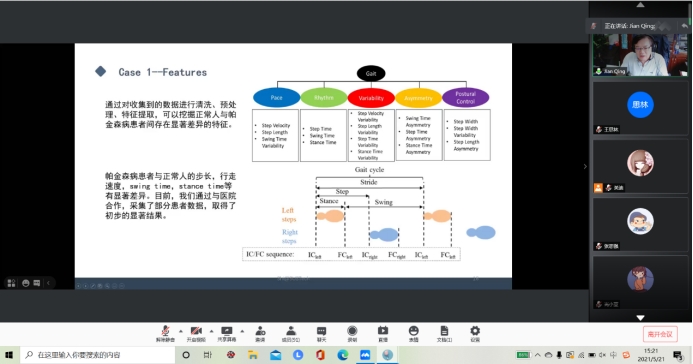 报告会中,史建清教授从老年精神系统退行性疾病讲起,继而讲述了各个阶段的步态研究。史教授生动向大家展示了AX6的设备并进行了介绍,表明了相对于实验数据,free-living数据有以下特点:(1)Free-living数据的随意性(2)巨大的非齐性(3)数据结构异常复杂(4)数据量很大。史建清教授通过3个实际例子生动形象地揭示了如何解决这些问题的思路。