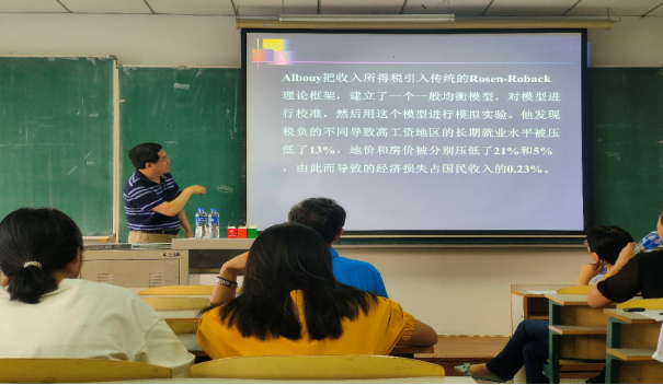 2021年7月8日下午5点10分在南湖校区教学科研楼409室,中南财经政法大学教授李占风莅临我院做学术报告,会议由萝莉社