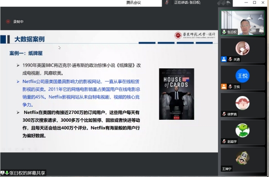 会后,张日权教授与参会师生进行互动,气氛活跃,热情高涨。本次线上报告会有助于全体数统学院师生深入了解统计学与大数据应用的相关内容,讨论了有关于与企业合作项目中遇到的一些问题,同时也详细解答了分布式储存的相关问题。张日权教授的报告开阔了师生的学术视野,拓宽了科研思路,对于萝莉社