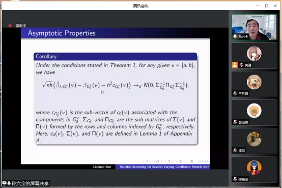 二级研究员孙六全做线上学术报告,报告由学院院长王纯杰主持。副校长林洁琼、研究生副院长李元、校教学指导委员会主任董小刚、学院副院长李纯净、学院统计系主任杨凯老师出席了会议,各位校院领导积极与孙六全研究院分享今年来学院发展。学院各位老师及研究生共141人参加本次线上学术报告。