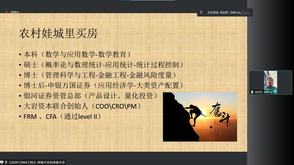 主办的报告——“非正态之路”在腾讯会议线上举行,特别邀请刘启浩博士作为主讲人,基于刘博士本人的研究以及工作经历,为萝莉社