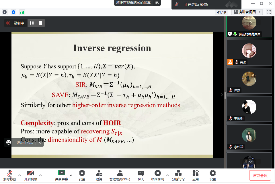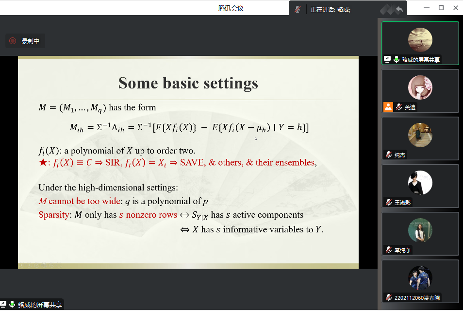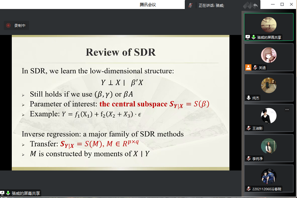 对于逆回归模型的一些基础的设置,骆威老师进行了简单的阐述。