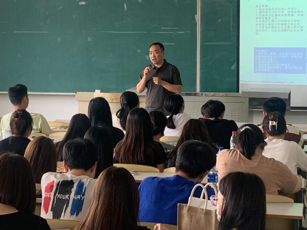 (通讯员:关迪)盛夏初临,毕业前夕,为扩展同学们对于未来职业发展规划,增加对于本学科的职业认识,2023年5月24日下午13:30,我院特邀北京康特瑞科统计科技有限责任公司司颖伟做学术报告,同时也邀请SAS中国区培训部总监康震与同学们进行交流,地点在南湖校区教学科研楼507,报告由应艳老师主持。