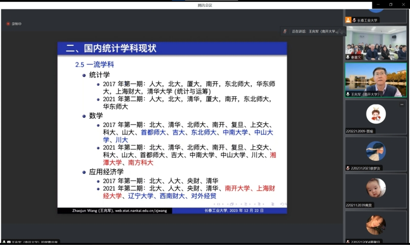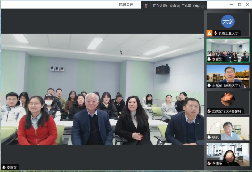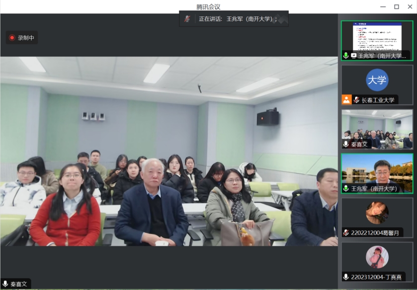 (通讯员:关迪)2023年12月22日9:00 ,南开大学王兆军教授为我院做线上学术报告,学校副校长林洁琼教授、校学术委员会副主任董小刚教授、萝莉社