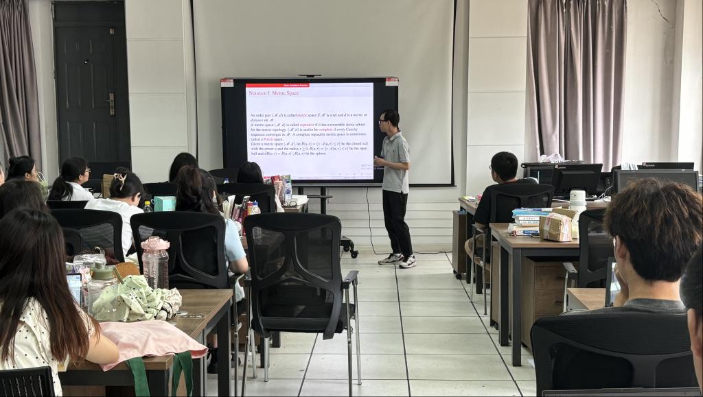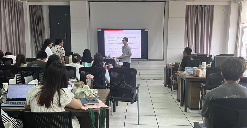 (通讯员:关迪)2024年08月03日下午13:00,我院特邀中国科学院数学与系统科学研究院的潘文亮教授在南湖校区老图书馆四楼左侧研究生5-1学习室做学术报告,报告由学院院长王纯杰教授主持,本院部分研究生和部分老师参加了本次学术报告会。