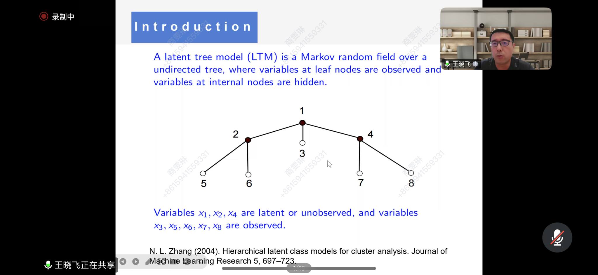 在报告中,王晓飞教授介绍了潜在树模型(LTM),接着,讨论了两种树结构学习方法及它们的优缺点:一种是根据评分指标(EM+BIC)搜索树结构;另一种是基于加性距离重建树结构。并介绍了了LTM的起源、动机及其在多尺度聚类和潜在结构发现中的应用,并探讨了如何在纯离散、纯连续和混合类型变量三种数据类型下定义信息距离,以及如何通过有效的统计和算法技术进行结构学习和参数估计,从而从数据中有效推断LTM。