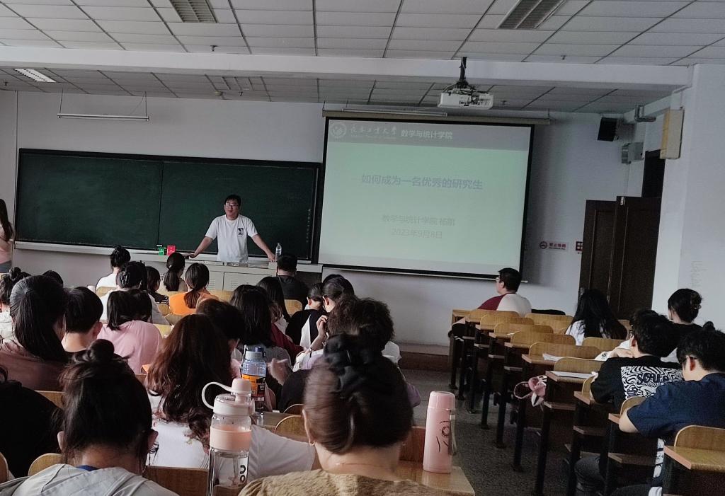 (通讯员:朱林敏)盛夏已收获,金秋再起航。值此崭新学年开始之际,为进一步帮助学生完成本科生与研究生的角色转换,指导学生合理规划日常学习生活,202398日上午10时,学院在科研楼307教室召开了 “如何成为一名优秀的研究生”专题讲座。本次讲座由学院副院长兼统计系主任杨凯主讲,2023级全体研究生参加了本次活动。