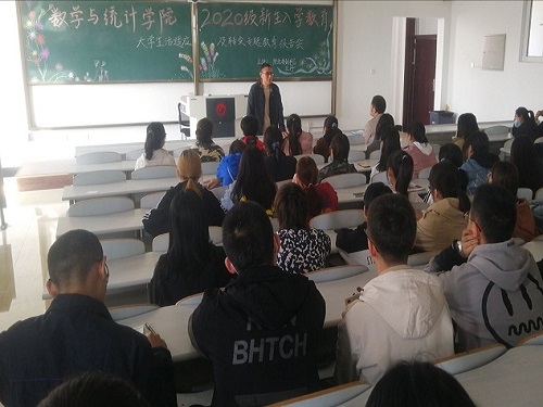 于2020年10月10日在艺术楼515教室开展2020级新生入学教育系列活动之大学生活适应及转变专题教育报告,本次活动由学院团委书记兼新生辅导员郑岩主持,学院党委副书记王丹主讲,2020级全体新生参加。