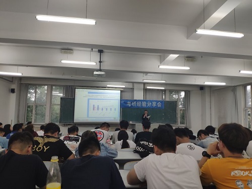 在教图楼301教室举办考研经验分享会。鲍金洲、赵宸轩、杨福康三位考研成功的学长为全体18级学生送上了一场精彩的考验经验分享报告。