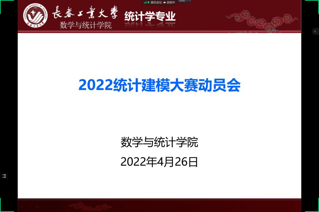 2022年4月26日下午18:00,我院在线上举办了“2022统计建模大赛动员会”,会议由统计系系主任杨凯主持,学院刘铭副院长、李纯净副院长出席了会议,学院各位老师、参赛研究生及本科生共156人参加本次线上动员会。