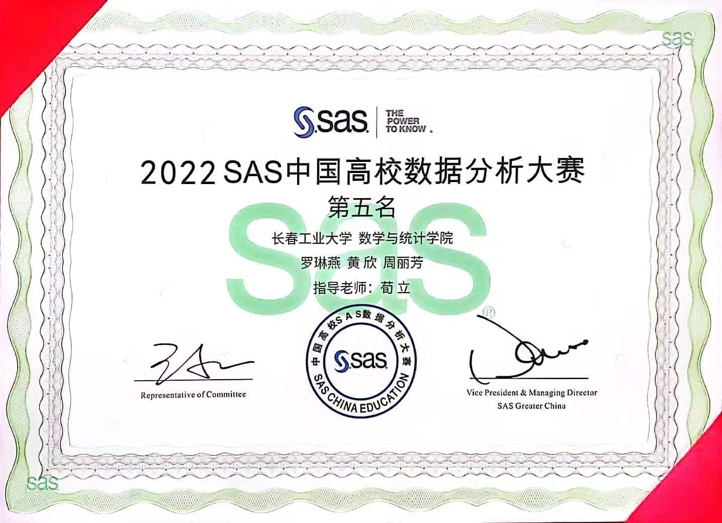 【通讯员屈红雁】2022 SAS中国高校数据分析大赛决赛于2023年4月16日至17日在河南省鹤壁市举行。在本次决赛中,我院共12支队伍入围,并取得了优异成绩。其中罗琳燕、黄欣、周丽芳三位同学组成的飒遍四方代表队更是取得了全国第五的历史最好成绩,为萝莉社