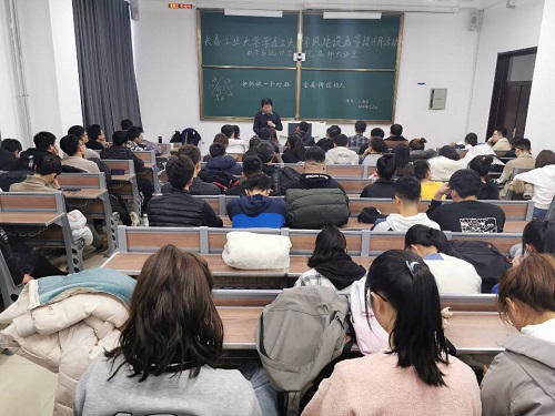 在北湖东校区教学主楼116室举办“学在工大”学风建设质量提升月活动名师大讲堂,特邀我院吉林省名师王新民教授为大一全体同学们作“如何做一个对社会有价值的人”专题报告会,报告会由院团委书记兼大一辅导员老师郑岩主持。