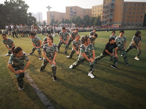 林园校区于2019年9月3日下午3点30分在操场举办2019级新生军训系列活动,校园异程接力赛。
