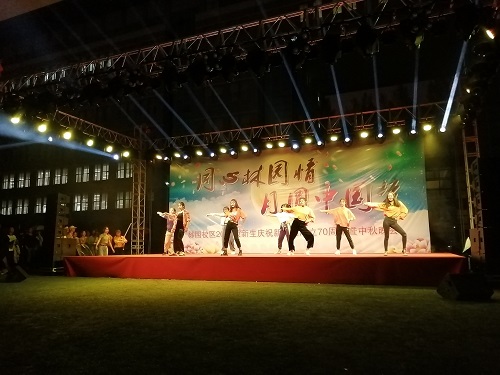 协同经济管理学院、公共管理学院、外国语学院、艺术设计学院和信息传播工程学院五个学院,在林园校区体育场隆重地举行“同心林园情,月圆中国梦”——庆祝新中国成立70周年暨中秋晚会。校级领导,各学院领导,新生辅导员老师出席晚会,林园校区6个学院的1500余名的2019级新生热情洋溢地观看了本次晚会。