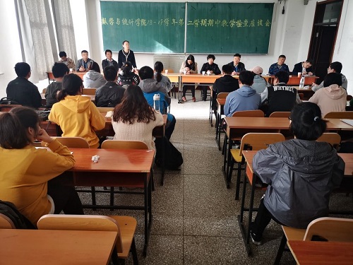 于2019年4月24日15时30分,在教学图书楼705教室举办期中教学质量检查座谈会。副校长王颖莅临座谈会、校督导组、学院党政领导、教学一线老师以及各班级的各年级学生代表出席参加,座谈会由副院长张海燕主持。