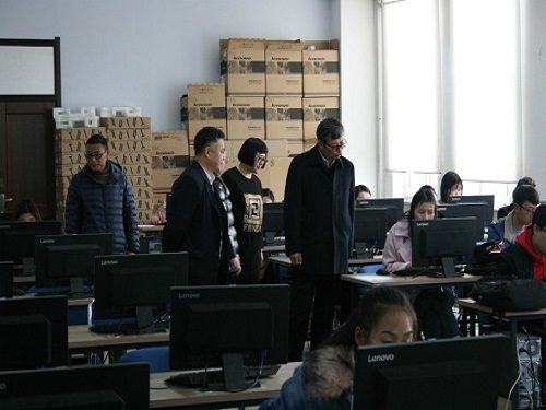 党委书记朱宏伟,党委副书记王丹,团委书记郑岩来到考试场地鼓励参赛学生,并祝愿他们能取得满意的成绩。
