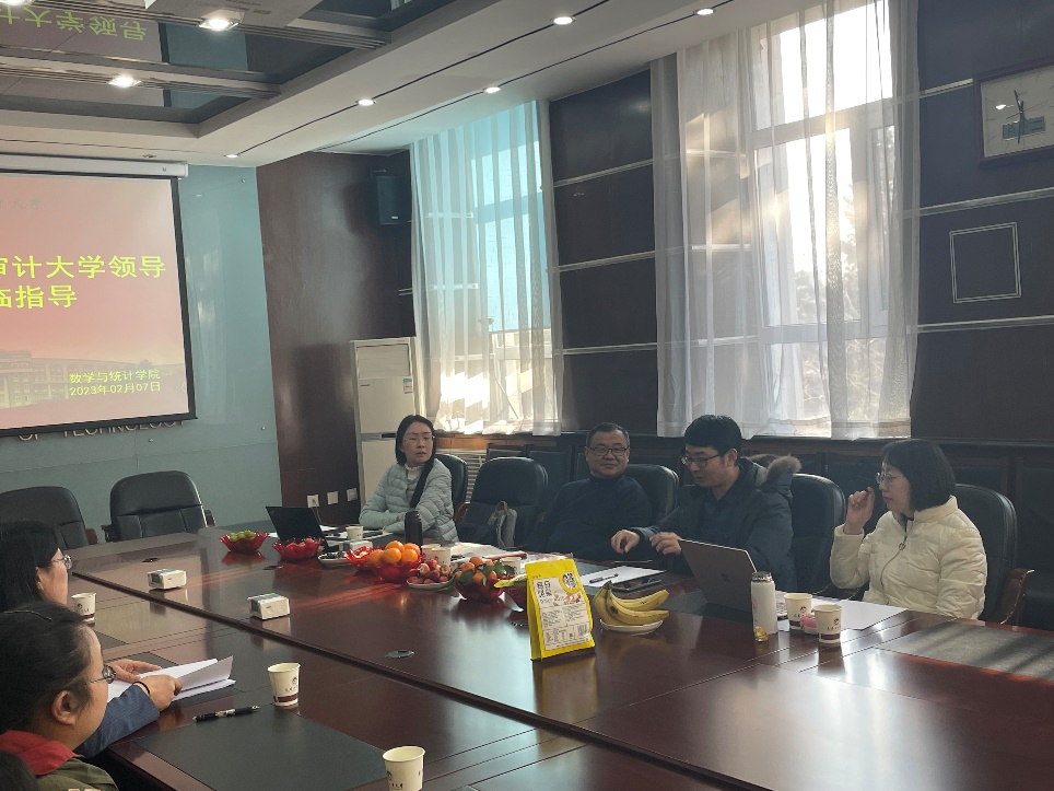 于2023年2月7日上午9点30分在南湖校区主楼二楼会议室与南京审计大学大数据科学研究院院长林金官教授、南京审计大学研究生院院长孔新兵教授一行四人举行学科建设专题研讨会。学院院长王纯杰教授、副院长李纯净教授、大数据科学研究院院长兼学科办副主任秦喜文教授、统计系主任杨凯副教授、统计系党支部书记袁晓惠副教授以及统计系全体教师参加了本次会议,会议由王纯杰院长主持。
