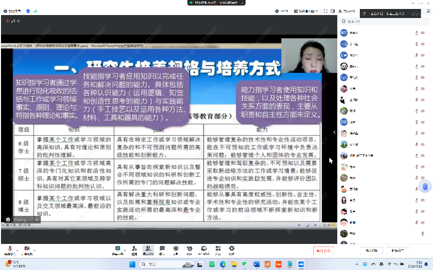 2024年5月12日上午8点30分,第一期培训班在线上如期举行,学院副院长杨凯副教授主持会议,学院全体研究生指导教师参加了本次培训。本次培训由浙江大学李丹青老师讲述研究生培养规范及论文指导要点。