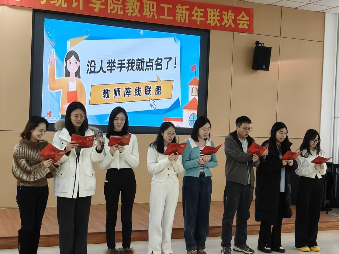 教职工新年联欢会送给教职工暖心和欢愉的同时,也激发了全院师生干事创业的热情与活力。2026年是教育强国建设全面布局、高位推进之年,让我们站在新的时代起点,赓续红色血脉,凝聚奋进力量,踔厉奋发、勇毅前行,在新征程上团结奋斗,共同创造数统美好的明天。龙马精神催奋进,勠力同心启新程!