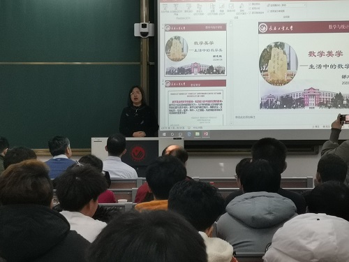 邰志艳教授于2020年12月16日10:10在北湖东区主楼220教室为我院师生作以“数学美学——生活中的数学之美”为内容的学术报告,出席本次报告会的有校教育处副处长杜鹃、校美育中心副主任山川、学院党委书记朱宏伟、院长王纯杰、副院长刘铭,教师代表白琪峰、张建影、黎海彤老师及2019级和2020级全体学生。