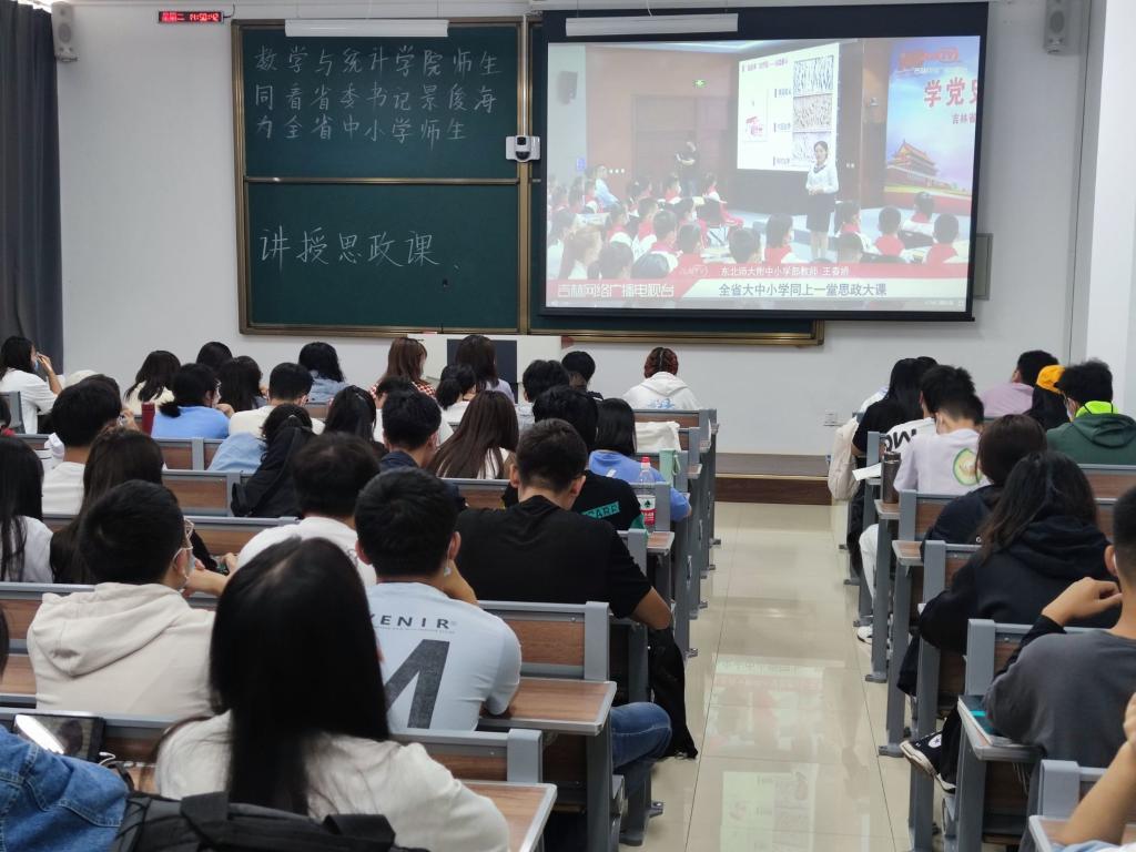于2021年9月14日组织全院600余名师生分别在北湖东区主楼232、主楼116、艺术楼515三间教室集中观看方式和个人手机端观看方式参加了此次线上直播思政课的学习。
