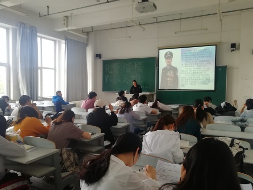 团委于2019年5月30日上午7:00组织各年级开展“学习筑梦”系列活动之“礼赞楷模,致敬英雄”为主题的团课。此次活动由17级、18级各班级团支书主持。