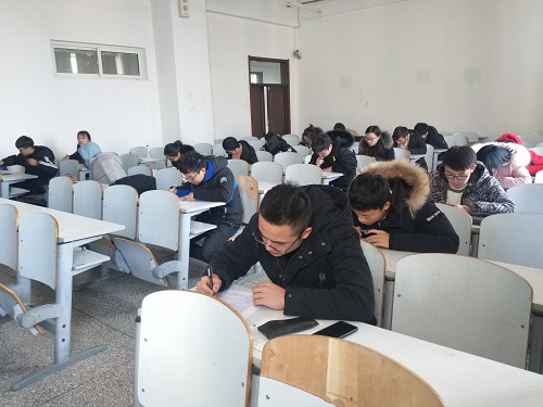 林园校区教图楼613教室举行党课培训的阶段性测试。此次测试由学生党支部书记郑岩老师监考。